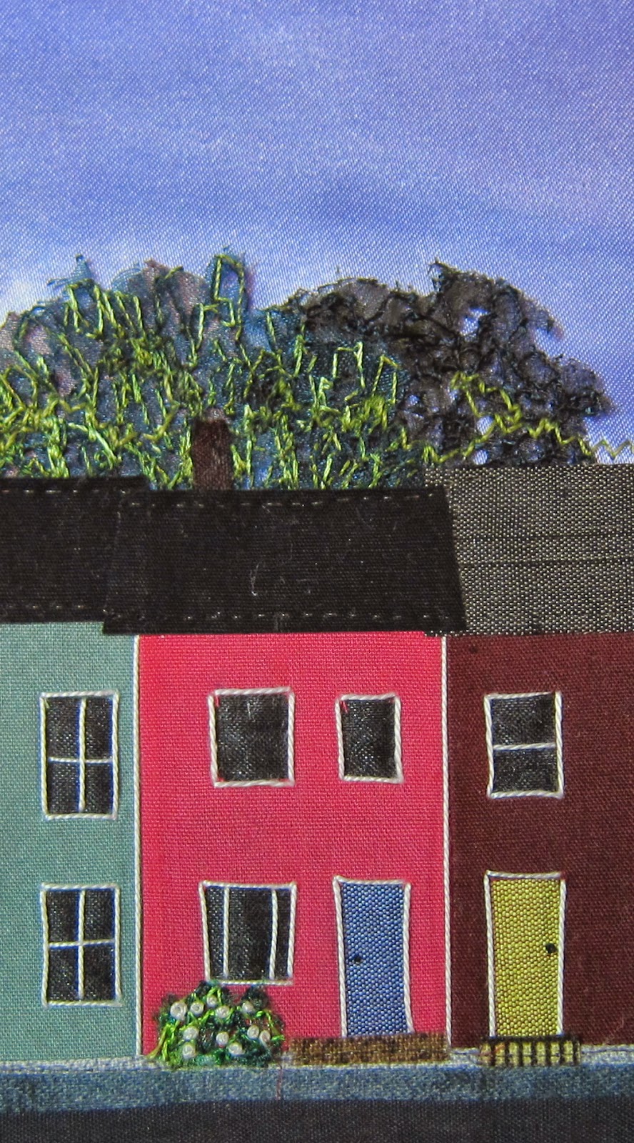 Today I selected several pieces of bright coloured fabric from my stash. The time has come to make a few more Wearable Art Pins: Row Houses. My supply has dwindled and I need more.